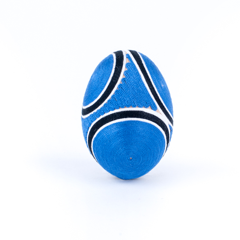 Kraslica oblepovaná bavlnkou modrý vzor- pásiky