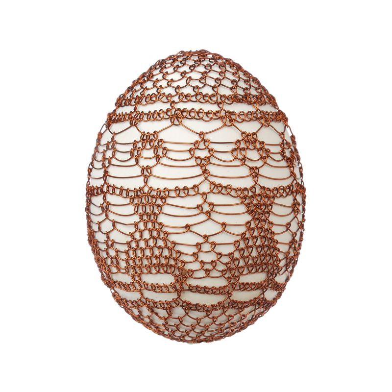 Kraslica odrôtovaná medeným drôtom. slepačia s motívom postavičiek.
