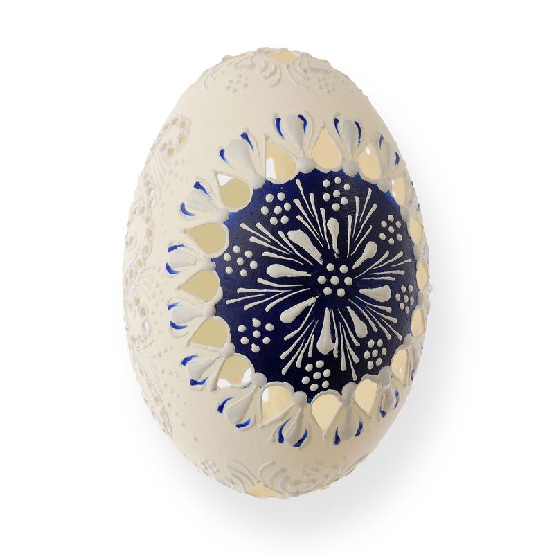 Kraslica oblepovaná bavlnkou modrý vzor- pásiky