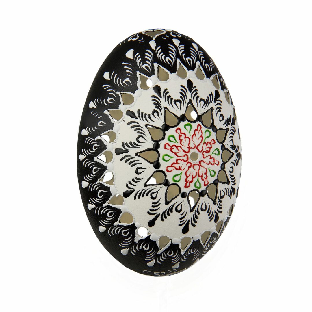 ÚĽUV / Výrobky / Kraslica perforovaná husacia – čierno -bielo -červená
