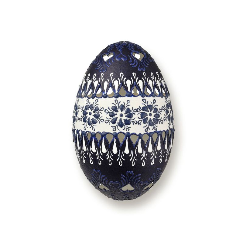Kraslica oblepovaná bavlnkou modrý vzor- pásiky