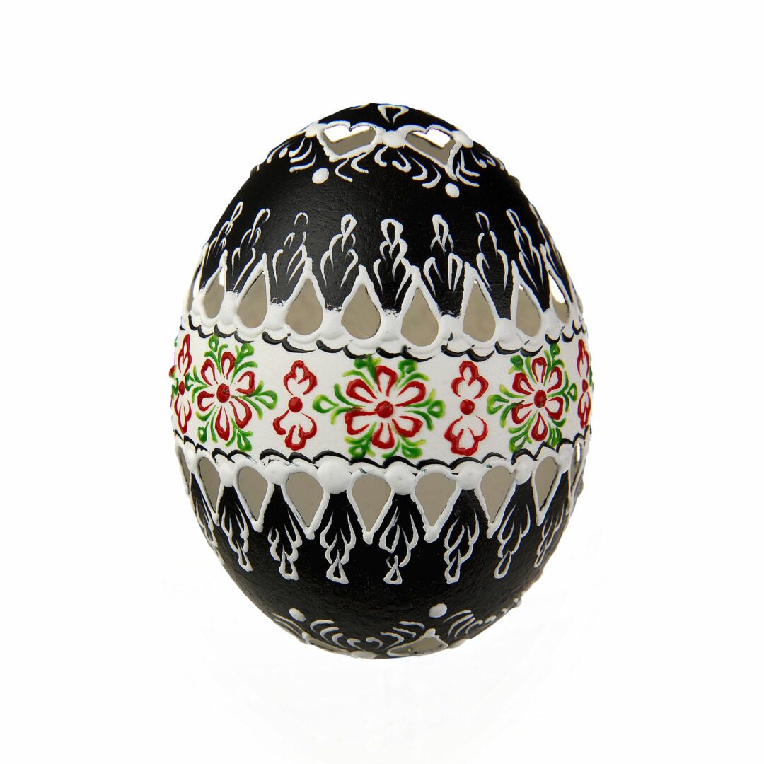 kraslica  perforovaná slepačia – čierno- bielo- červená