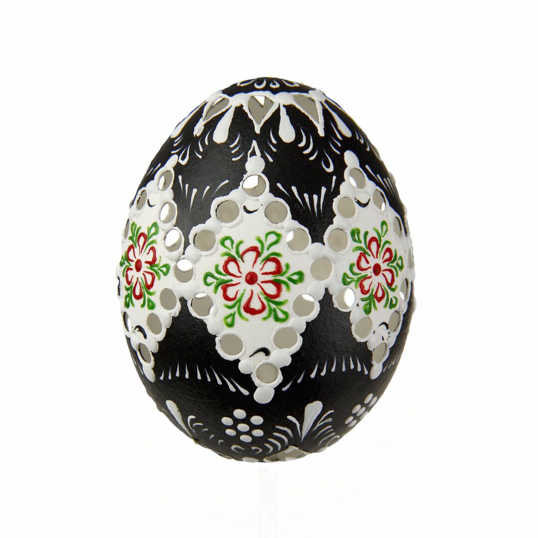 ÚĽUV / Výrobky / Kraslica perforovaná slepačia – čierno-bielo-červená