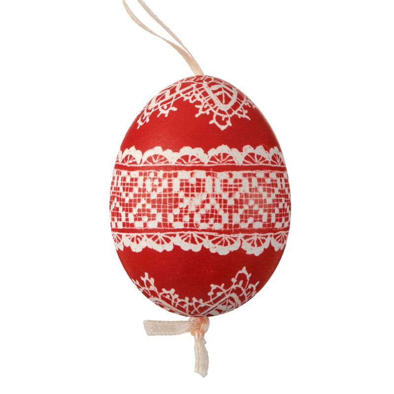 Kraslica oblepovaná bavlnkou červený vzor – kvety