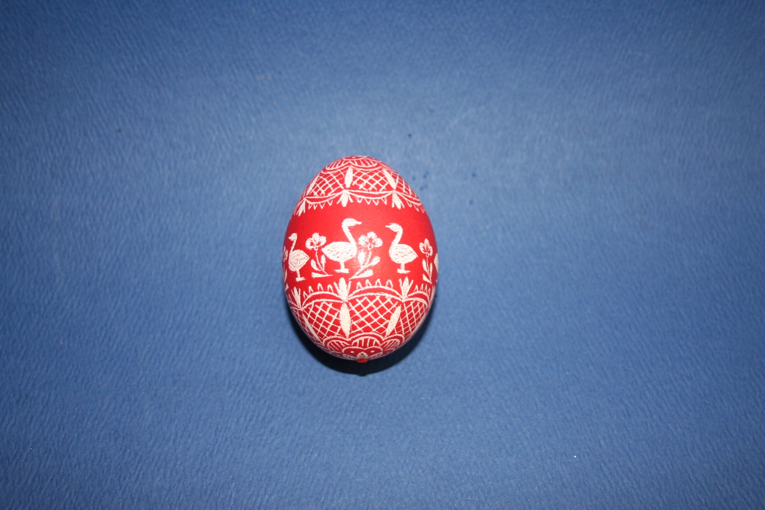 Kraslica oblepovaná bavlnkou červený vzor – kvety