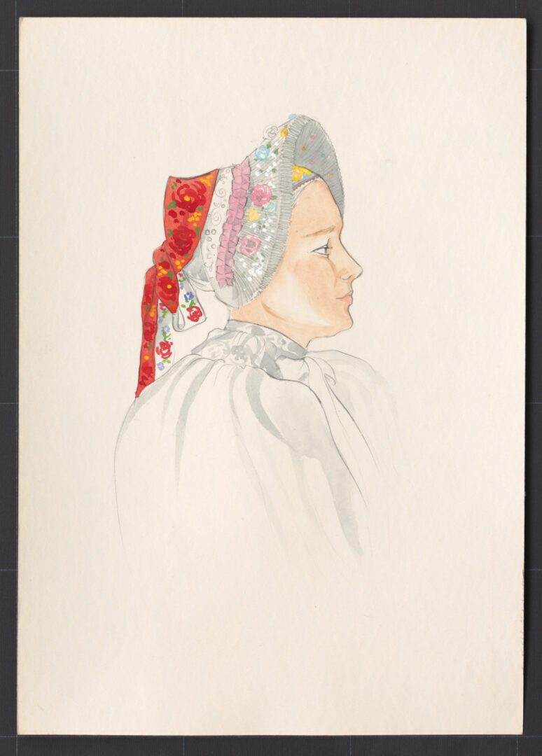 Kresba – čepiec ženský slávnostný – úprava na hlave