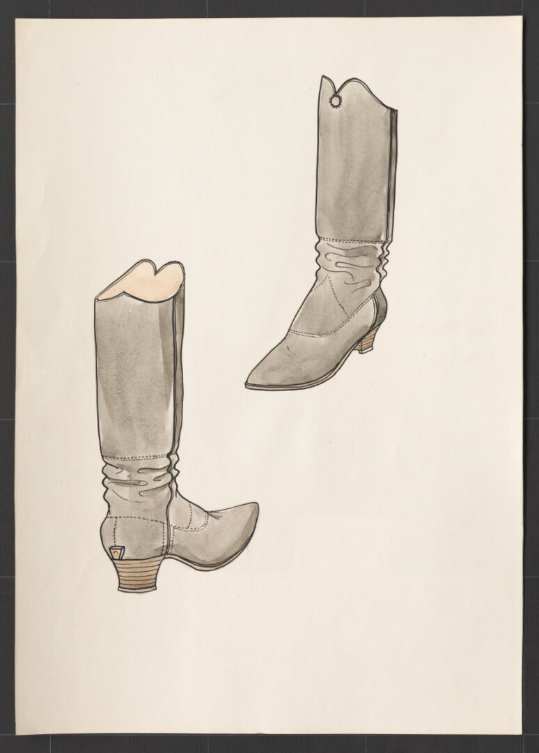 Mužské čižmy, Mokrý Háj, začiatok 20. storočia. Čižmy sa šili z jemnej čiernej kože. Mali tvrdú sáru, mäkký, harmonikovo sa skladajúci priehlavok a užší, vyšší opätok. Charakteristickým znakom mužských čižiem je do tvaru srdca vykrojený horný okraj sár a kožený gombík v hrote vykrojenia. Čižmy vždy boli sviatočnou obuvou. Staršou formou vysokej obuvi boli slovenské boty, ktoré sa nosili v 19. storočí vo všedné aj sviatočné dni. Ušité boli z hrubšej hovädzej kože, aj podošvu mali prišitú, nie pribitú. Opätok nahrádzala kovová podkovička. V letnom období sa vo všedné dni obúvali kožené pantofle alebo sa chodilo naboso.