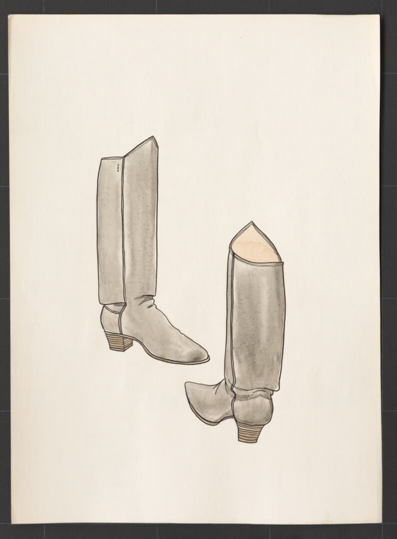 Ženské čižmy, Mokrý Háj, začiatok 20. storočia. Čižmy sa šili z jemnej čiernej kože. Mali tvrdú sáru a užší, vyšší opätok. Charakteristickým znakom ženských čižiem je horný okraj sár vykrojený do oblúka alebo hrotu. Čižmy vždy boli sviatočnou obuvou. Staršou formou vysokej obuvi boli slovenské boty, ktoré sa nosili v 19. storočí vo všedné aj sviatočné dni. Ušité boli z hrubšej hovädzej kože, aj podošvu mali prišitú, nie pribitú. Opätok nahrádzala kovová podkovička. V letnom období sa vo všedné dni obúvali kožené pantofle alebo sa chodilo naboso.