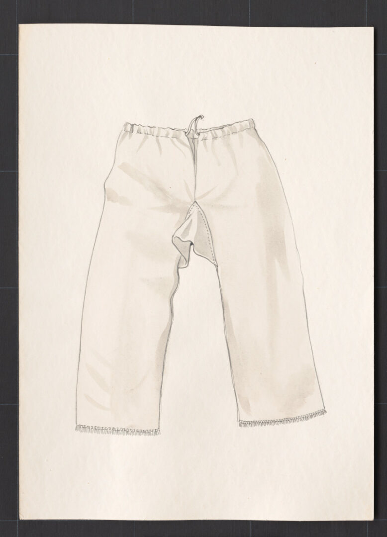 Gate, Horná Súča, prvá štvrtina 20. storočia. Gate sú ušité z dvoch pôl domáceho konopného plátna. Konce sú ukončené mešterkou a vystrapkané. Gate sa nosili v lete vo všedné dni. V zime sa obliekali pod súkenné nohavice. Ich nosenie na miestnych kopaniciach sa ojedinele udržalo až do polovice 20. storočia.