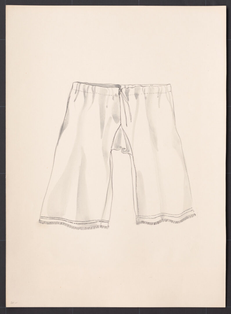 Gate, Bzovík, prvá štvrtina 20. storočia. Gate (gaty) sú ušité zo štyroch pôl domáceho jemnejšieho bavlneného plátna, každá gaťa z dvoch pôl. Siahajú takmer po členky. V lete sa nosili vo všedné i sviatočné dni ako vrchné oblečenie. V zime sa obliekali ako spodné gate pod súkenné nohavice. Na všedné dni boli gate z hrubšieho konopného alebo ľanového plátna. Vo sviatočné dni sa nosili gate z jemnejšieho domáceho ľanového alebo bavlneného plátna.