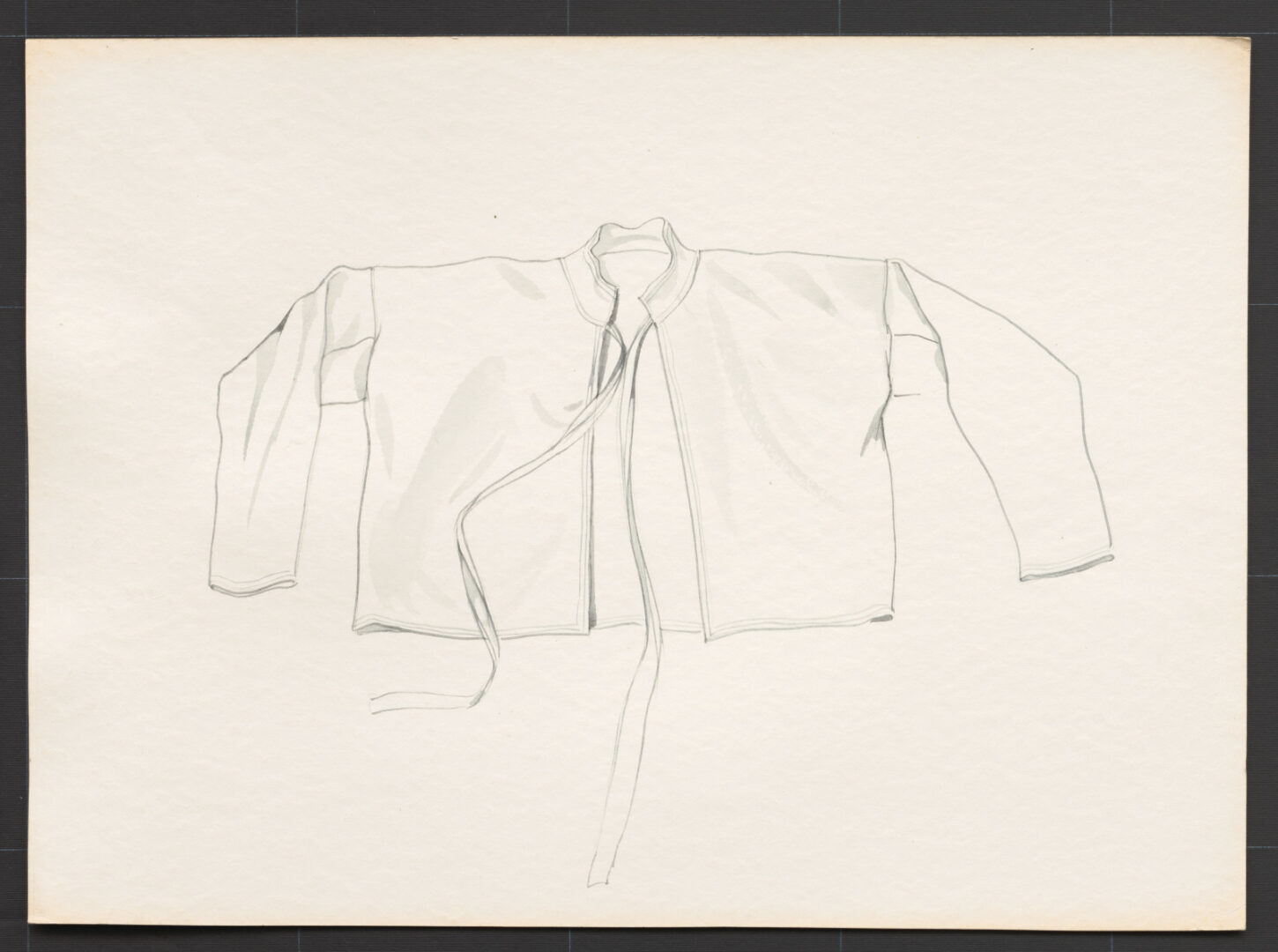 Ženský kabátik, Zázrivá, začiatok 20. storočia. Kabátik (biely kabát) je ušitý z hrubšieho bieleho bavlneného plátna, ktorým je aj podšitý. Má rovný strih s vyšším stojatým golierom. Kabátik nosili ženy v chladnom období roka vo všedné i sviatočné dni. Na všedné dni sa kabátiky šili z hrubšieho domáceho ľanového plátna a na sviatočné dni z hrubšieho kupovaného bavlneného plátna.