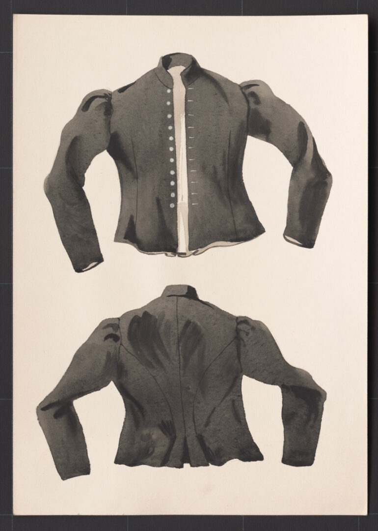 Ženský kabátik, Osturňa, prvá štvrtina 20. storočia. Kabátik (reklík) je ušitý z čierneho flanelu a podšitý bielym bavlneným plátnom. Strihaný je do pása, siaha do výšky bokov. Kabátiky sa začali nosiť v polovici prvej štvrtiny 20. storočia. Spočiatku sa šili z hrubého, zrebného domáceho plátna, ktoré sa dalo zafarbiť na tmavo. Až neskôr sa začal používať flanel alebo glot. Kabátiky nosili len vydaté ženy vo všedné dni alebo pri ceste do mesta.