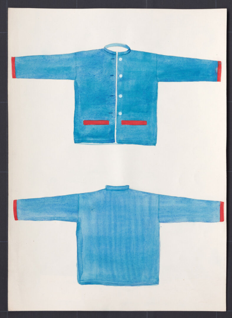 Ženský kabátik, Terchová, druhá štvrtina 20. storočia. Kabátik je ušitý z modrého bavlneného kepra a podšitý bielym domácim ľanovým plátnom. Má rovný strih. Okraje sú lemované červeným molinom. Kabátik bol v zimnom období alternatívou kožucha. Nosili ho ženy, ktoré nevlastnili kožuch. Začiatkom 20. storočia sa kabátiky šili z bieleho a čierneho jemného súkna alebo flanelu. Biele kabátiky nosili slobodné dievčatá a mladé ženy, kým čierne kabátiky staršie ženy.