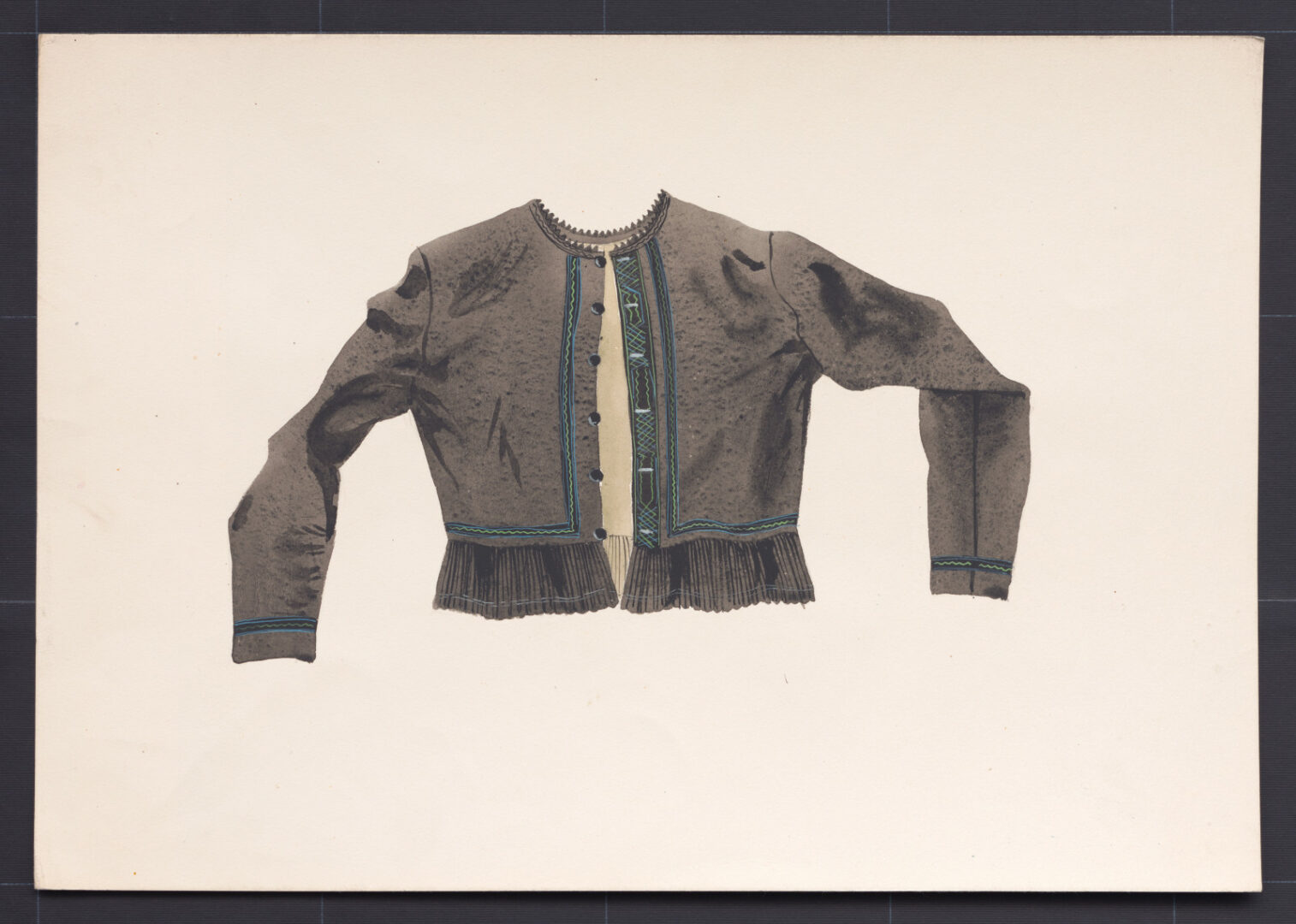 Ženský kabátik, Opatová, začiatok 20. storočia. Kabátik (lipitka) je ušitý z čierneho glotu a podšitý hrubším kupovaným bavlneným plátnom. Patril k sviatočnejším odevným súčiastkam v chladnom období. Nosili ho deti do školy, slobodné dievčatá a ženy mimo domu alebo pri ceste do mesta. Okrem glotu sa lipitky šili aj z hodvábu alebo z farbiarskeho plátna, v polovici 20. storočia i z brokátu. Postupne sa tiež menil spôsob ich výzdoby. Najskôr ich zdobila len našitá zamatová stuha, k nej neskôr pribudla strojová výšivka a ozdobné bortne.