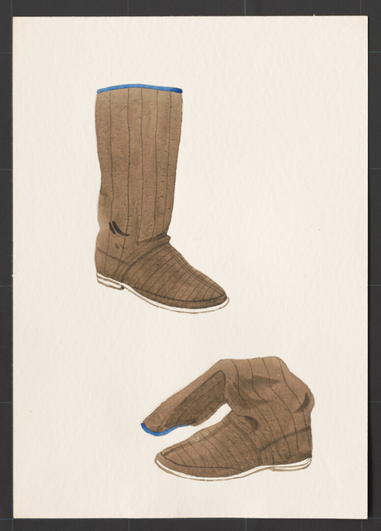Kapce, Zázrivá, druhá štvrtina 20. storočia. Kapce (kopytcá) sú ušité z domáceho tmavohnedého súkna, ktoré je podšité domácim ľanovým plátnom. Skladajú sa z priehlavku, zo sáry spojenej s pätou a z podrážky. Podrážka a opätok sú zhotovené z viacerých vrstiev súkna, prešitých hrubou dratvou. Kapce boli obľúbeným druhom zimnej obuvi. Nosili sa vo všedné i sviatočné dni, dokonca v zime mohla v nich ísť aj mladucha na sobáš.