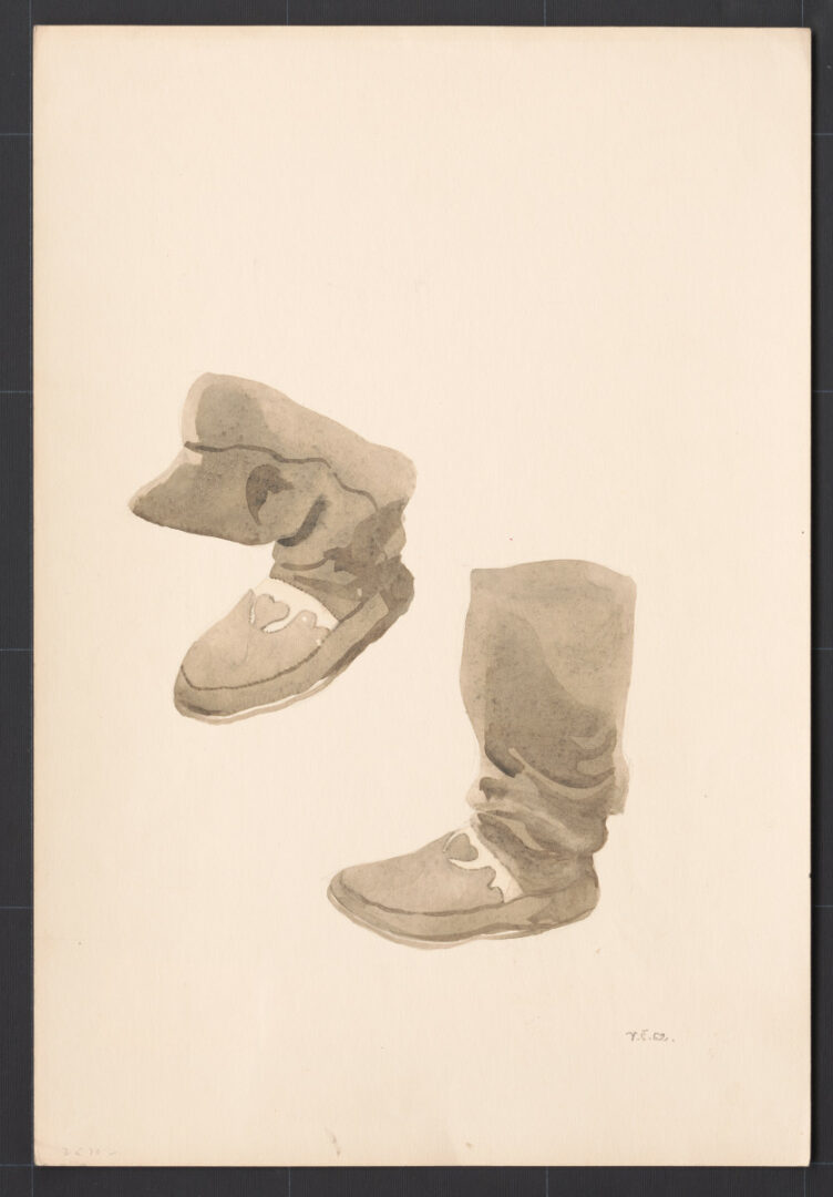 Ženské kapce, Turie Pole, prvá štvrtina 20. storočia. Kapce (kapcáty) sú ušité z domáceho sivého a bieleho súkna. Podošvy majú z viacerých vrstiev súkna, ktoré je husto prešité hrubou konopnou dratvou. Kapce sa nosili najmä v zime.