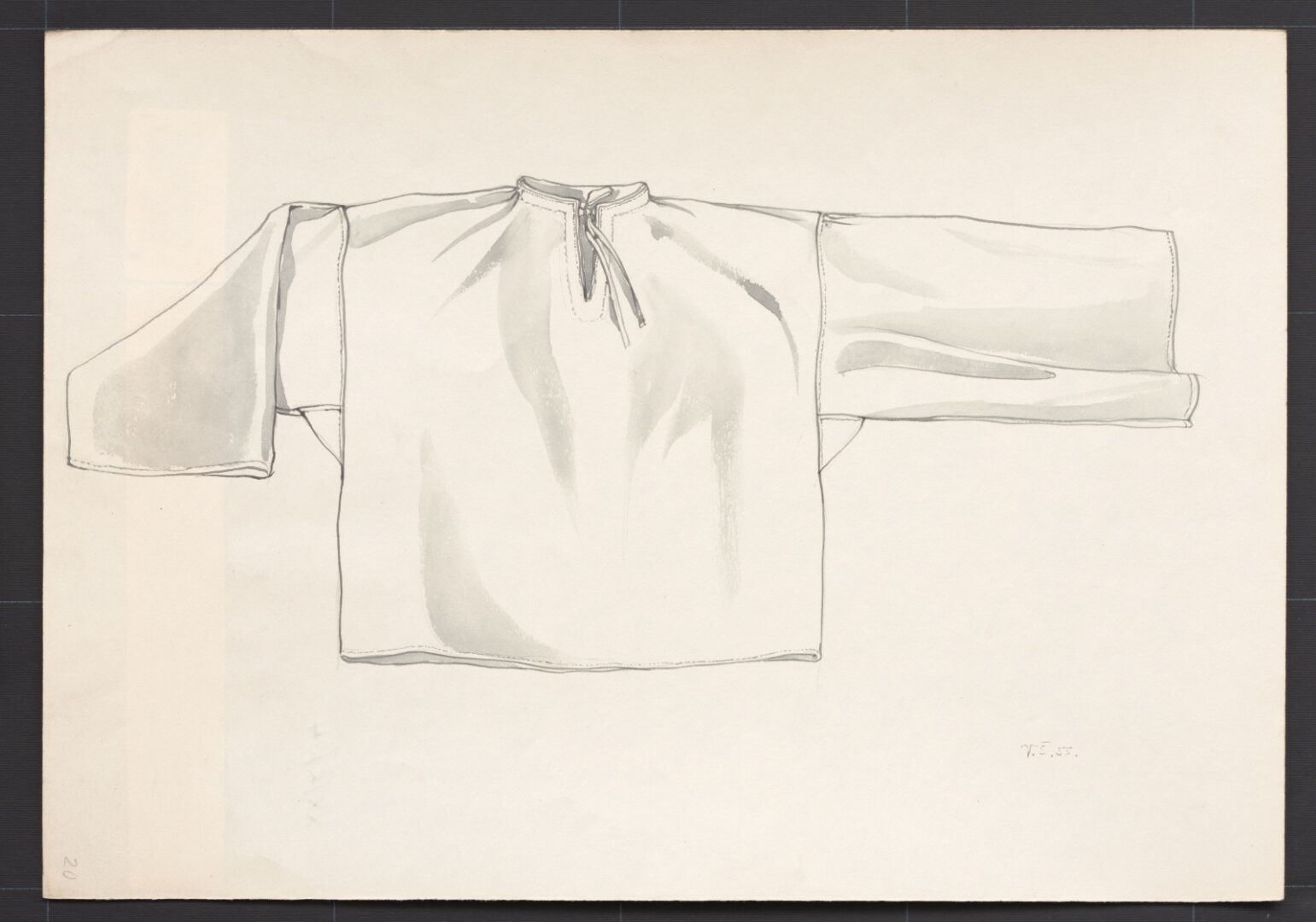 Mužská košeľa, Rejdová, prvá štvrtina 20. storočia. Košeľa je ušitá z domáceho ľanového plátna. Má rovný strih s rovnými, voľnými rukávmi. Siaha do pása, zvyčajne sa nosila nezakasaná. Častejšie ako z ľanového plátna sa košele šili z domáceho konopného plátna. V priebehu prvej polovice 20. storočia sa zvlášť sviatočné košele začali šiť aj z kupovaného bavlneného plátna. Súčasne sa menil ich strih, ktorý sa čoraz viac podobal strihu mestských košieľ.