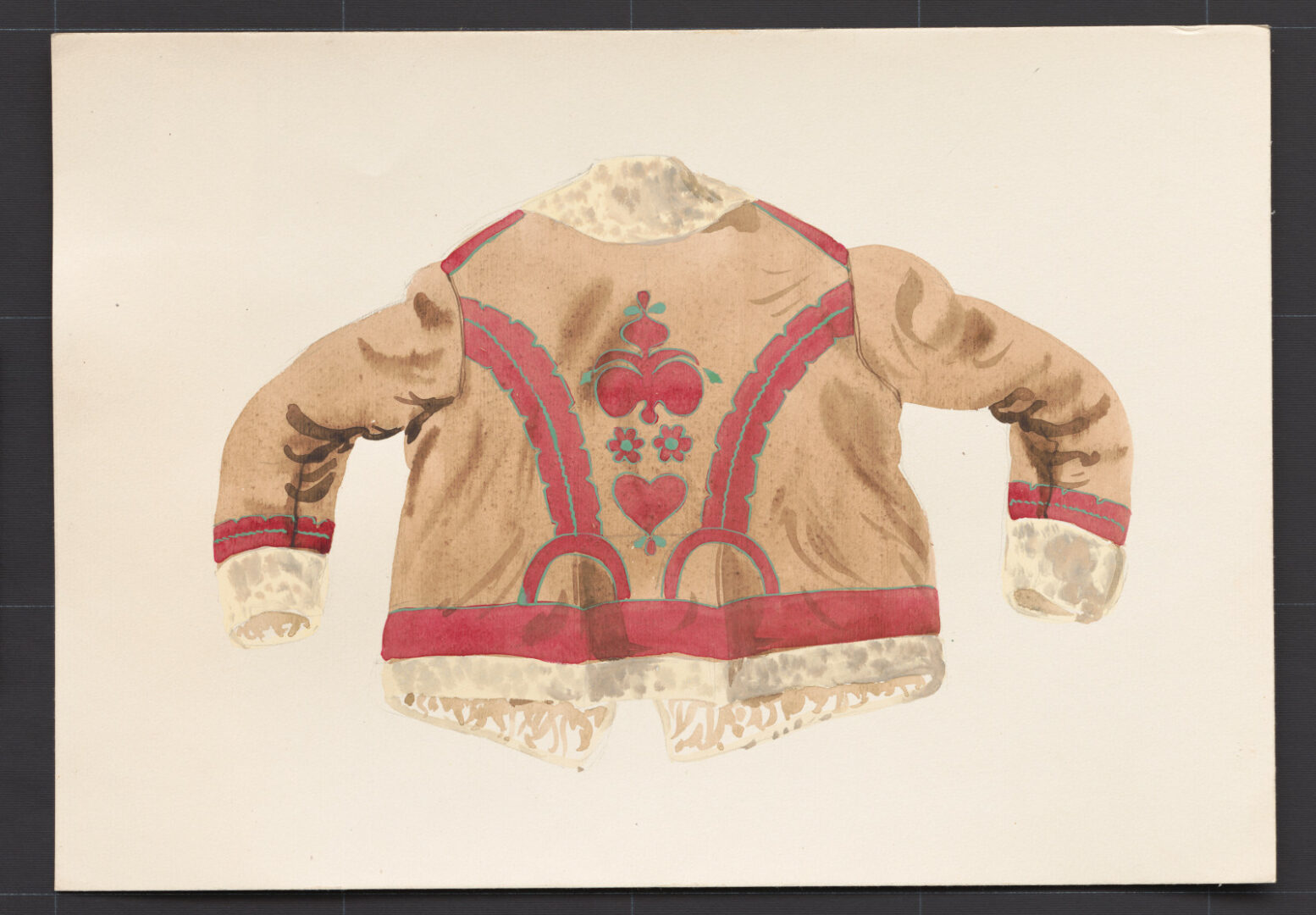 Ženský kožuch, Lubina, koniec 19. storočia. Kožuch je ušitý z hnedej ovčej kožušiny, má rovný strih, siaha do výšky bokov. Zdobia ho aplikácie veľkých motívov kvetov a lístkov z červenej irchy, ktorá je lemovaná zeleným pásikom. Začiatkom 20. storočia bol kožuch už zriedkavou a nákladnou odevnou súčiastkou, preto si ho dávali šiť len ženy najbohatších gazdov. Kožuchy šil kožušník v Novom Meste nad Váhom.
