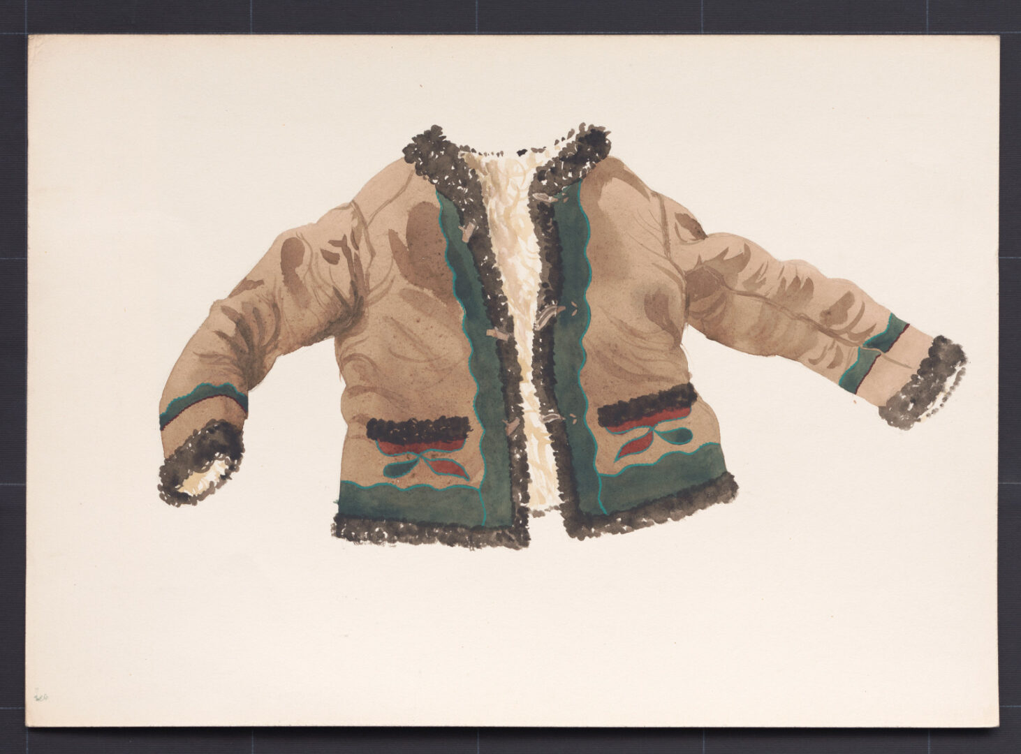Ženský kožuch, Terchová, začiatok 20. storočia. Kožuch je ušitý z hnedej ovčej kožušiny. Má rovný strih. Okraje lemuje pás čiernej barančiny a tmavozelenej irchy. Kožuchy nosili najmä staršie ženy. Vo veľmi tuhej zime si mohlo matkin kožuch obliecť aj slobodné dievča. V 19. storočí išla v kožuchu, ktorý bol súčasťou jej vena, mladucha na sobáš. Kožuchy sa zvyčajne kupovali na jarmokoch v Žiline alebo vo Varíne.
