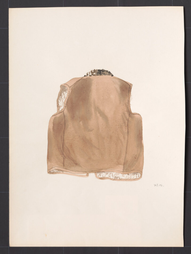 Mužský kožuštek, Lazisko, začiatok 20. storočia. Kožuštek (kamizol) je ušitý z hnedej ovčej kožušiny, má rovný strih a siaha do pása. Krčný výstrih a zapínanie lemuje pás čiernej barančiny. V 19. storočí sa nosili aj kožušteky z bielej ovčej kožušiny. V priebehu prvej polovice 20. storočia bol kožuštek postupne nahradený tmavým súkenným lajblíkom.