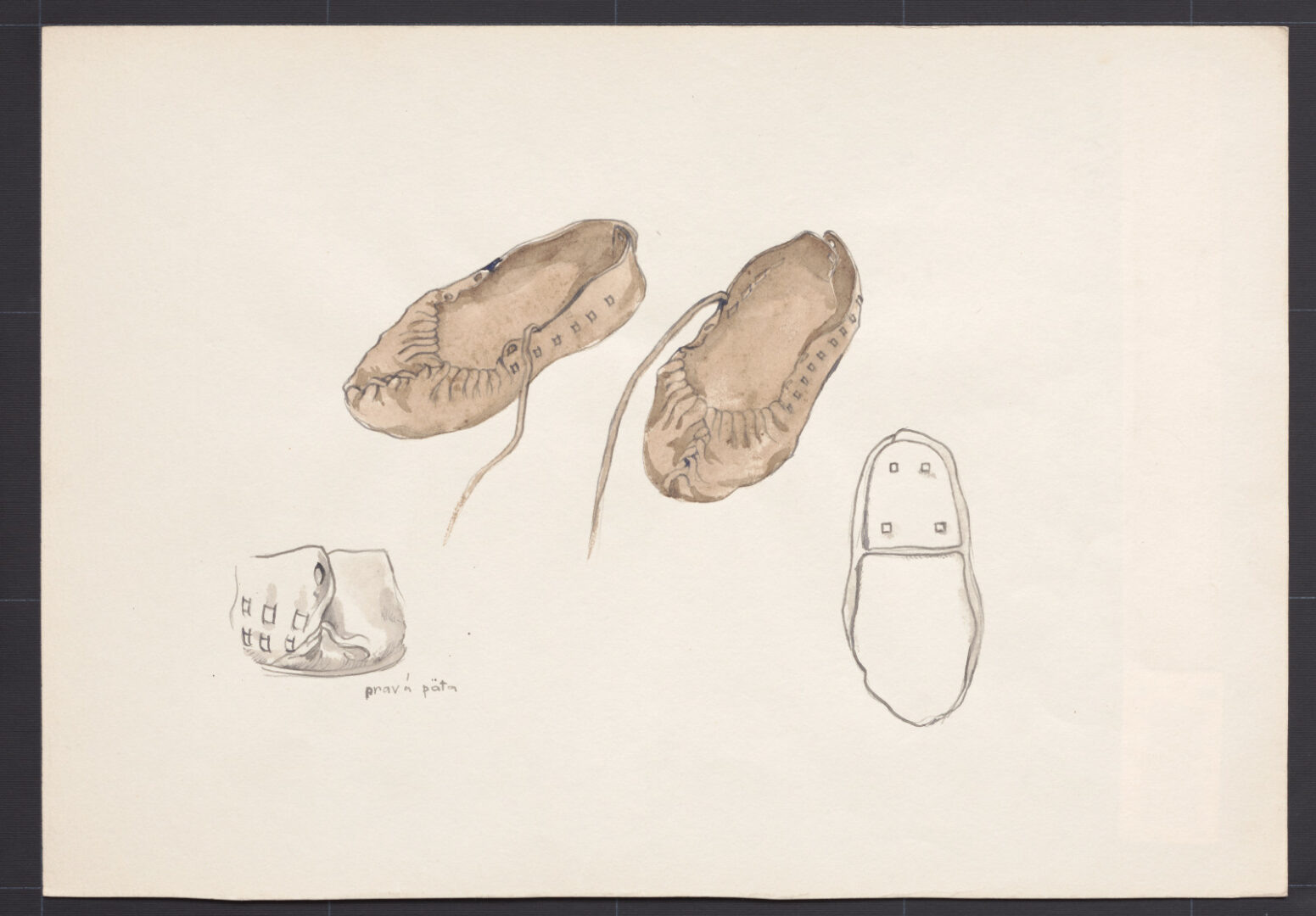 Ženské krpce, Kojšov, začiatok 20. storočia. Krpce (bočkori) sú ušité z jemnejšej hovädzej kože. Päty sa podbíjali kusom hrubšej kože (talpou), z ktorej trčali štyri klince. K nohe sa krpce upevňovali úzkymi koženými návlakmi (strokancami). V lete sa do krpcov obúvali biele plátenné onuce a v zime súkenné onuce. Ženské krpce sa od mužských odlišovali tým, že boli v prednej časti nazberané.