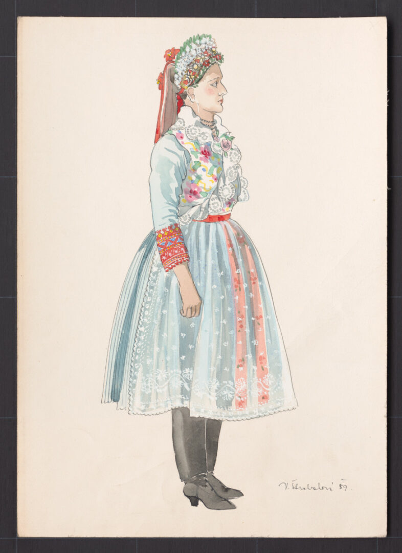 Viera Škrabalová-Líčeníková bola výraznou slovenskou textilnou výtvarníčkou so širokým záberom tvorivých činností. V rámci pôsobenia v ÚĽUV-e sa Viera Škrabalová-Líčeníková venovala aj odevnej návrhárskej tvorbe. Kresbové návrhy módneho oblečenia nesú v sebe výzdobné prvky ľudového odevu ako sú výšivka alebo čipka, inšpiráciou bolo tiež tvarové riešenie ľudových odevných súčiastok. Kresby dokumentujú situáciu 50-tych rokov 20. storočia, kedy ÚĽUV úzko spolupracoval s vyšívačskými, čipkárskymi či modrotlačovými výrobnými družstvami. Touto spoluprácou medzi družstvami a návrhovými dielňami vzniklo niekoľko hodnotných modelov, ktoré prešli aj do bežnej výroby.