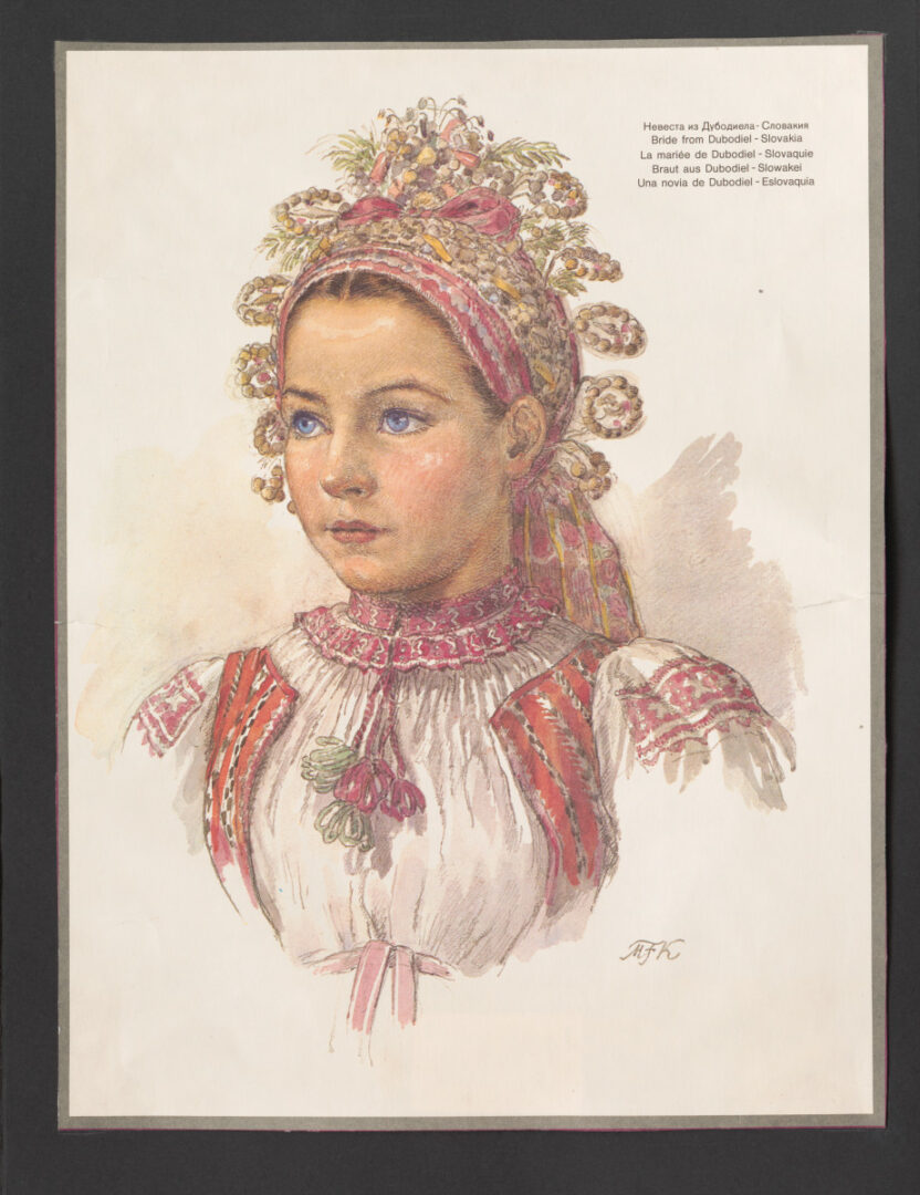Reprodukcia zobrazujúca nevestu v parte z obce Dubodiel.