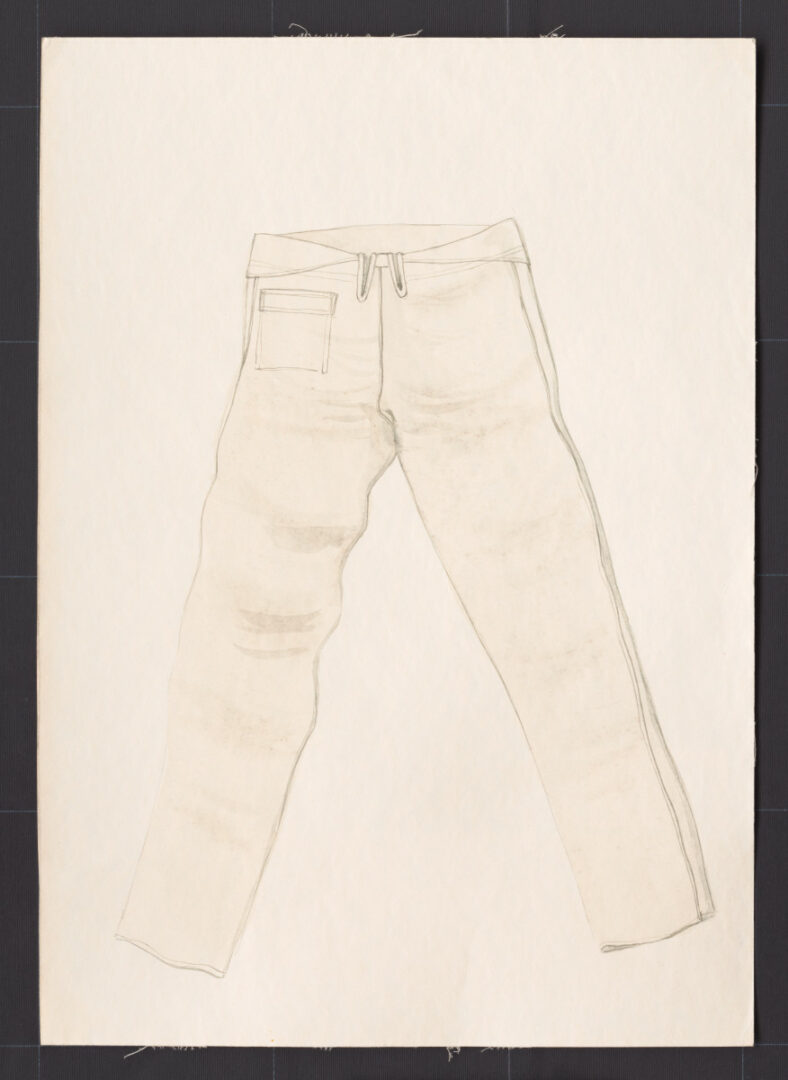 Nohavice na všedné dni, Sečovská Polianka, prvá polovica 20. storočia. Nohavice (nohavky) sú ušité z doma tkaného konopného kepra (drelichu). Majú tradičný strih so švíkom po vonkajšej strane nohavíc a s našitým vreckom. Nohavice na všedné dni boli bez výzdoby. Nohavice na sviatočné dni sa šili z bavlneného kepra a zdobilo ich strojové štepovanie čiernou niťou. Chlapec dostal prvé nohavice vo veku 4-5 rokov.