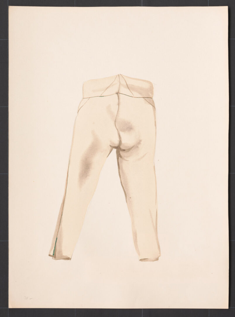 Nohavice, Myslava, prvá štvrtina 20. storočia. Nohavice (chološne) sú ušité z domáceho súkna. Majú tradičný strih s jedným švíkom na vonkajšej strane. Súkenné nohavice nosili muži len v zime vo všedné dni. V lete si obliekali nohavice (nohavky) z trojväzného kepra – drilichu.