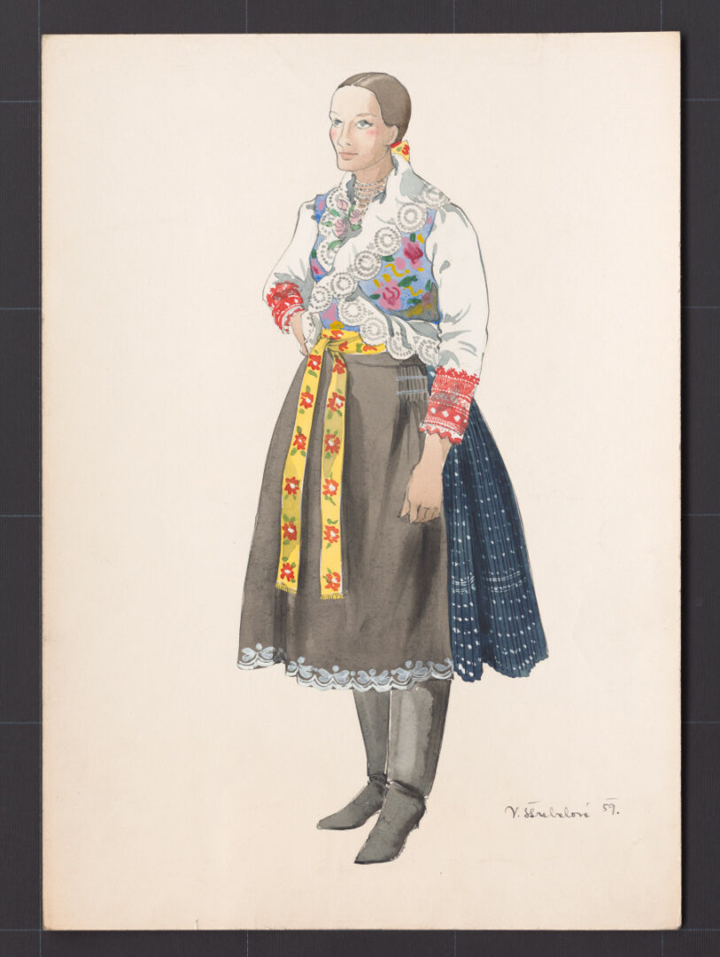Viera Škrabalová-Líčeníková bola výraznou slovenskou textilnou výtvarníčkou so širokým záberom tvorivých činností. V rámci pôsobenia v ÚĽUV-e sa Viera Škrabalová-Líčeníková venovala aj odevnej návrhárskej tvorbe. Kresbové návrhy módneho oblečenia nesú v sebe výzdobné prvky ľudového odevu ako sú výšivka alebo čipka, inšpiráciou bolo tiež tvarové riešenie ľudových odevných súčiastok. Kresby dokumentujú situáciu 50-tych rokov 20. storočia, kedy ÚĽUV úzko spolupracoval s vyšívačskými, čipkárskymi či modrotlačovými výrobnými družstvami. Touto spoluprácou medzi družstvami a návrhovými dielňami vzniklo niekoľko hodnotných modelov, ktoré prešli aj do bežnej výroby.