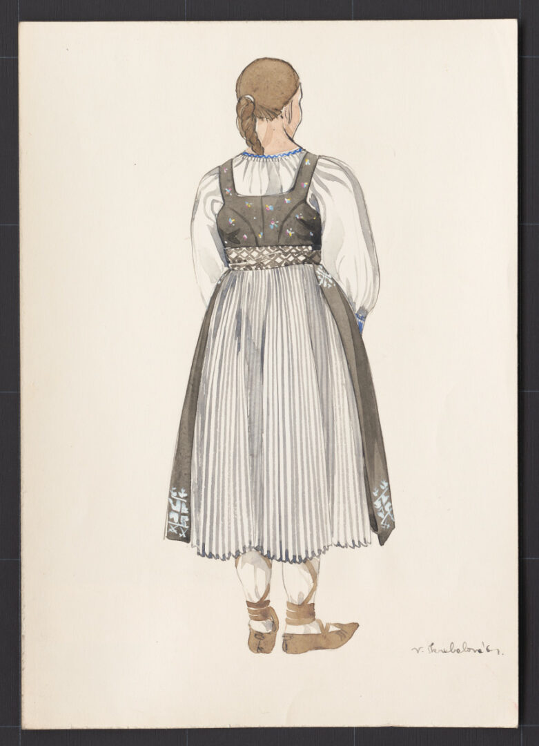 Súbor kresieb, ktoré sa nachádzajú v zbierke Múzea ľudovej umeleckej výroby, obsahuje najmä návrhy ženských denných a spoločenských šiat, tiež blúz. Súčasťou návrhov sú stručné popisy udávajúce materiál, strih a výzdobu odevov. Na zhotovenie šiat boli navrhované prírodné tkaniny – bavlnené, ľanové i hodvábne materiály.