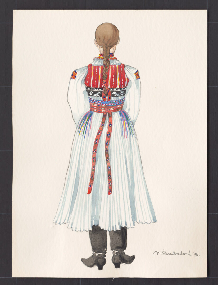 Viera Škrabalová-Líčeníková bola výraznou slovenskou textilnou výtvarníčkou so širokým záberom tvorivých činností. V rámci pôsobenia v ÚĽUV-e sa Viera Škrabalová-Líčeníková venovala aj odevnej návrhárskej tvorbe. Kresbové návrhy módneho oblečenia nesú v sebe výzdobné prvky ľudového odevu ako sú výšivka alebo čipka, inšpiráciou bolo tiež tvarové riešenie ľudových odevných súčiastok. Kresby dokumentujú situáciu 50-tych rokov 20. storočia, kedy ÚĽUV úzko spolupracoval s vyšívačskými, čipkárskymi či modrotlačovými výrobnými družstvami. Touto spoluprácou medzi družstvami a návrhovými dielňami vzniklo niekoľko hodnotných modelov, ktoré prešli aj do bežnej výroby.