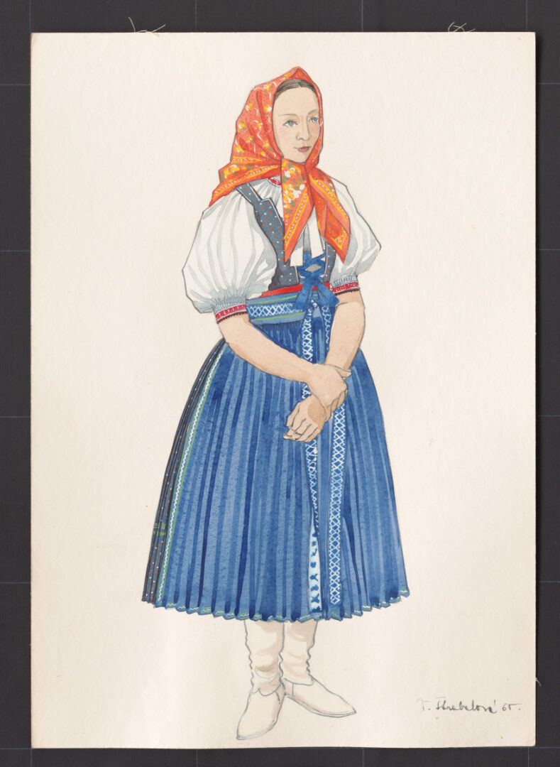 Súbor kresieb, ktoré sa nachádzajú v zbierke Múzea ľudovej umeleckej výroby, obsahuje najmä návrhy ženských denných a spoločenských šiat, tiež blúz. Súčasťou návrhov sú stručné popisy udávajúce materiál, strih a výzdobu odevov. Na zhotovenie šiat boli navrhované prírodné tkaniny – bavlnené, ľanové i hodvábne materiály.