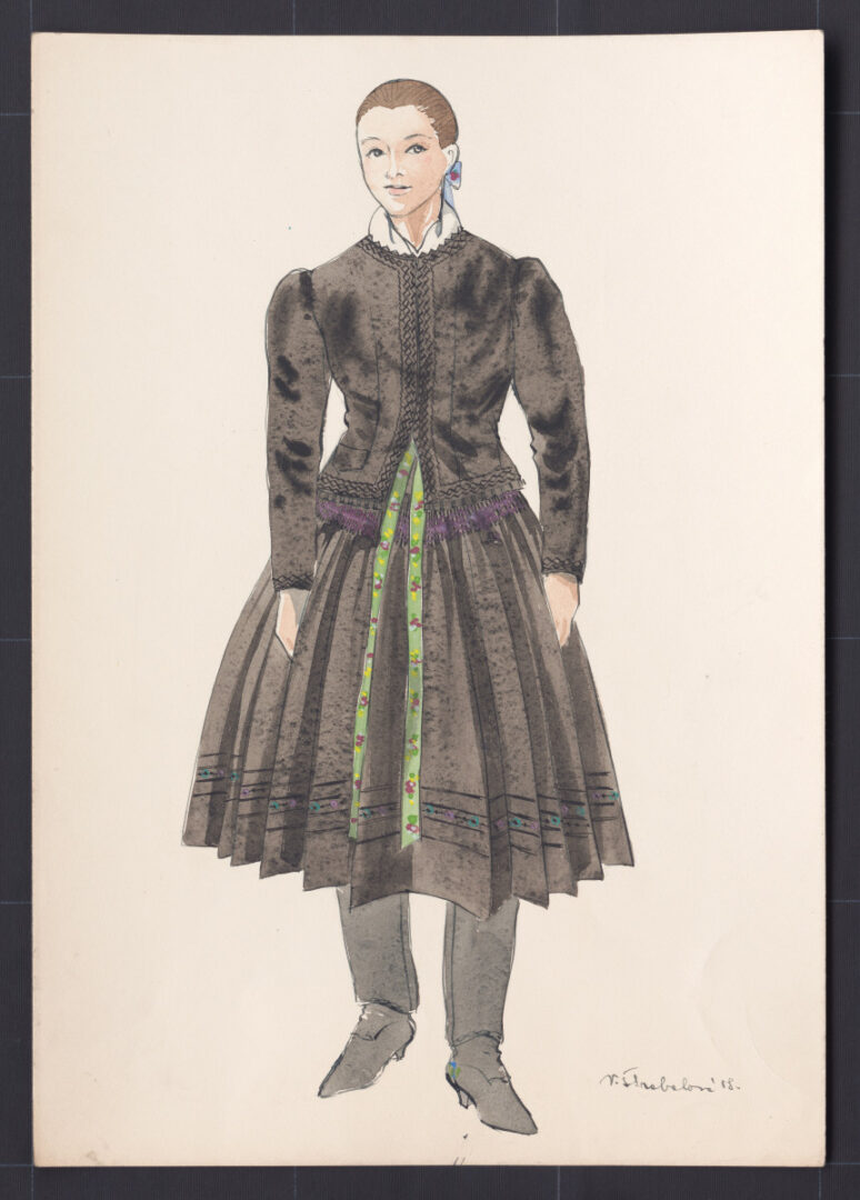 Súbor kresieb, ktoré sa nachádzajú v zbierke Múzea ľudovej umeleckej výroby, obsahuje najmä návrhy ženských denných a spoločenských šiat, tiež blúz. Súčasťou návrhov sú stručné popisy udávajúce materiál, strih a výzdobu odevov. Na zhotovenie šiat boli navrhované prírodné tkaniny – bavlnené, ľanové i hodvábne materiály.