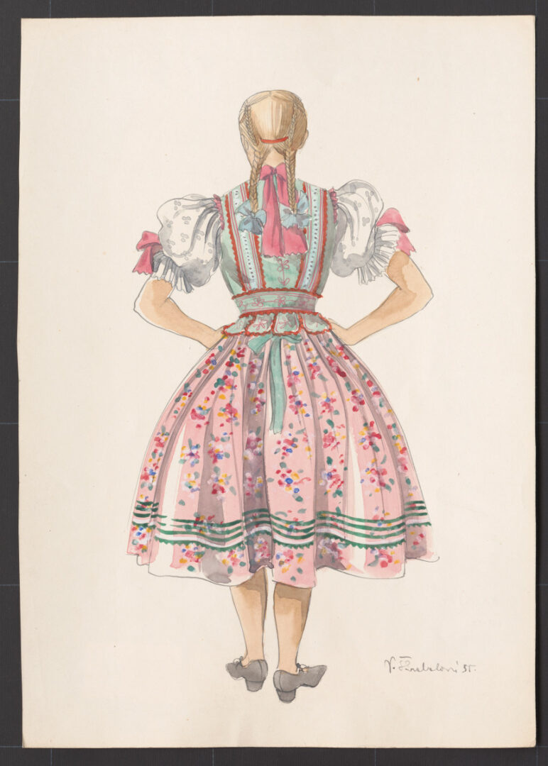 Súbor kresieb, ktoré sa nachádzajú v zbierke Múzea ľudovej umeleckej výroby, obsahuje najmä návrhy ženských denných a spoločenských šiat, tiež blúz. Súčasťou návrhov sú stručné popisy udávajúce materiál, strih a výzdobu odevov. Na zhotovenie šiat boli navrhované prírodné tkaniny – bavlnené, ľanové i hodvábne materiály.