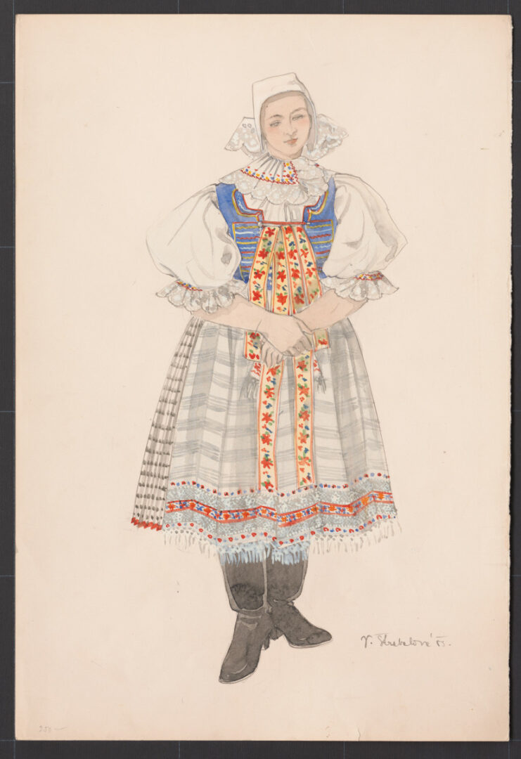 Súbor kresieb, ktoré sa nachádzajú v zbierke Múzea ľudovej umeleckej výroby, obsahuje najmä návrhy ženských denných a spoločenských šiat, tiež blúz. Súčasťou návrhov sú stručné popisy udávajúce materiál, strih a výzdobu odevov. Na zhotovenie šiat boli navrhované prírodné tkaniny – bavlnené, ľanové i hodvábne materiály.