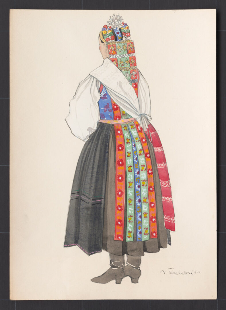 Viera Škrabalová-Líčeníková bola výraznou slovenskou textilnou výtvarníčkou so širokým záberom tvorivých činností. V rámci pôsobenia v ÚĽUV-e sa Viera Škrabalová-Líčeníková venovala aj odevnej návrhárskej tvorbe. Kresbové návrhy módneho oblečenia nesú v sebe výzdobné prvky ľudového odevu ako sú výšivka alebo čipka, inšpiráciou bolo tiež tvarové riešenie ľudových odevných súčiastok. Kresby dokumentujú situáciu 50-tych rokov 20. storočia, kedy ÚĽUV úzko spolupracoval s vyšívačskými, čipkárskymi či modrotlačovými výrobnými družstvami. Touto spoluprácou medzi družstvami a návrhovými dielňami vzniklo niekoľko hodnotných modelov, ktoré prešli aj do bežnej výroby.