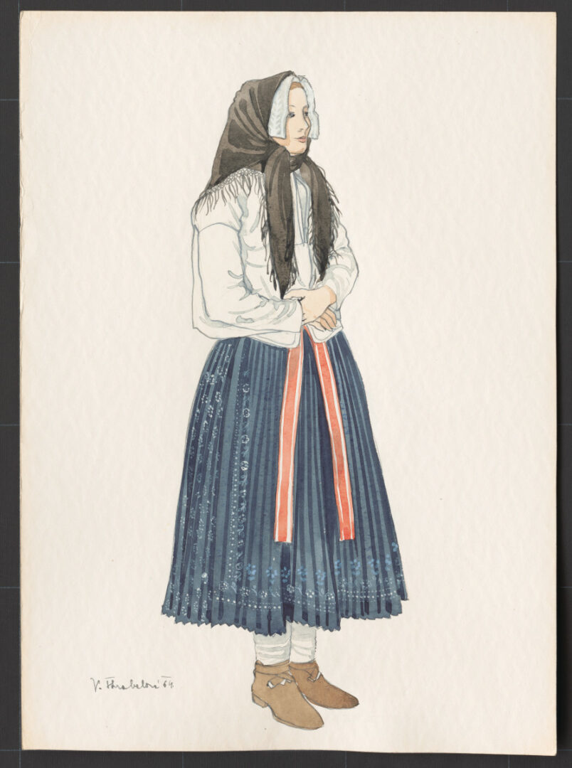 Viera Škrabalová-Líčeníková bola výraznou slovenskou textilnou výtvarníčkou so širokým záberom tvorivých činností. V rámci pôsobenia v ÚĽUV-e sa Viera Škrabalová-Líčeníková venovala aj odevnej návrhárskej tvorbe. Kresbové návrhy módneho oblečenia nesú v sebe výzdobné prvky ľudového odevu ako sú výšivka alebo čipka, inšpiráciou bolo tiež tvarové riešenie ľudových odevných súčiastok. Kresby dokumentujú situáciu 50-tych rokov 20. storočia, kedy ÚĽUV úzko spolupracoval s vyšívačskými, čipkárskymi či modrotlačovými výrobnými družstvami. Touto spoluprácou medzi družstvami a návrhovými dielňami vzniklo niekoľko hodnotných modelov, ktoré prešli aj do bežnej výroby.