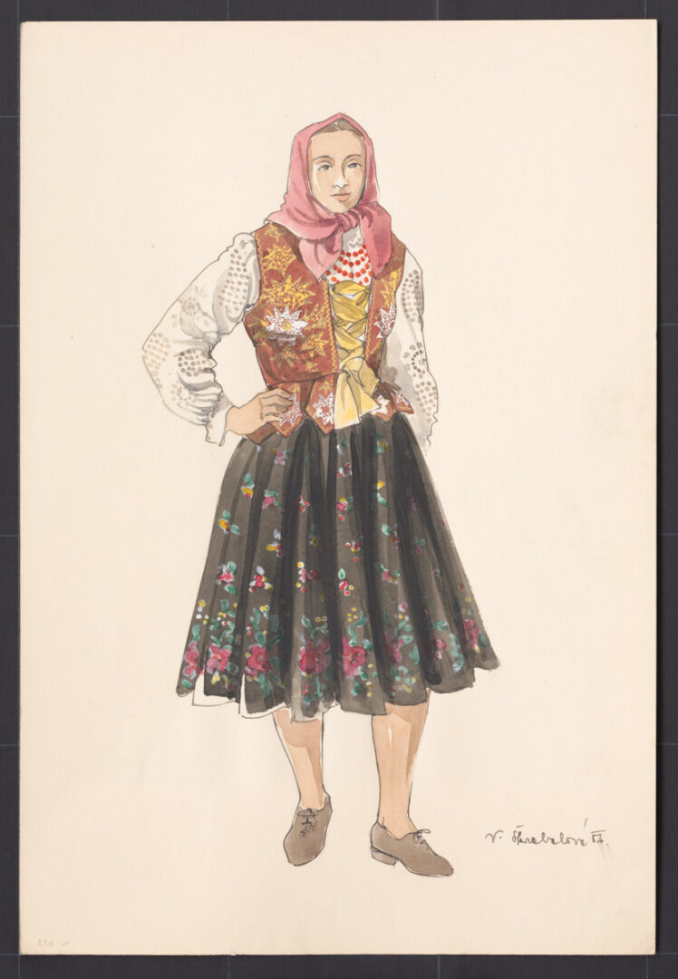 Súbor kresieb, ktoré sa nachádzajú v zbierke Múzea ľudovej umeleckej výroby, obsahuje najmä návrhy ženských denných a spoločenských šiat, tiež blúz. Súčasťou návrhov sú stručné popisy udávajúce materiál, strih a výzdobu odevov. Na zhotovenie šiat boli navrhované prírodné tkaniny – bavlnené, ľanové i hodvábne materiály.