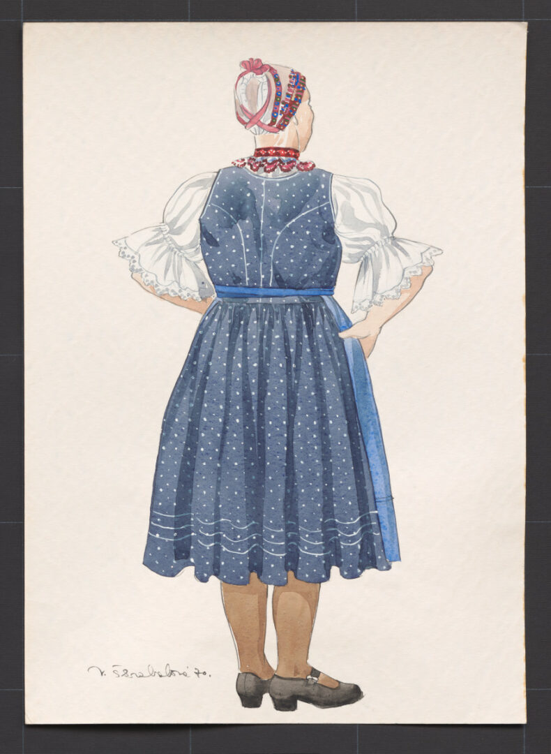 Súbor kresieb, ktoré sa nachádzajú v zbierke Múzea ľudovej umeleckej výroby, obsahuje najmä návrhy ženských denných a spoločenských šiat, tiež blúz. Súčasťou návrhov sú stručné popisy udávajúce materiál, strih a výzdobu odevov. Na zhotovenie šiat boli navrhované prírodné tkaniny – bavlnené, ľanové i hodvábne materiály.