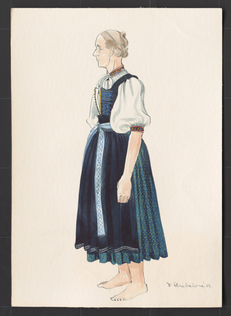 Súbor kresieb, ktoré sa nachádzajú v zbierke Múzea ľudovej umeleckej výroby, obsahuje najmä návrhy ženských denných a spoločenských šiat, tiež blúz. Súčasťou návrhov sú stručné popisy udávajúce materiál, strih a výzdobu odevov. Na zhotovenie šiat boli navrhované prírodné tkaniny – bavlnené, ľanové i hodvábne materiály.