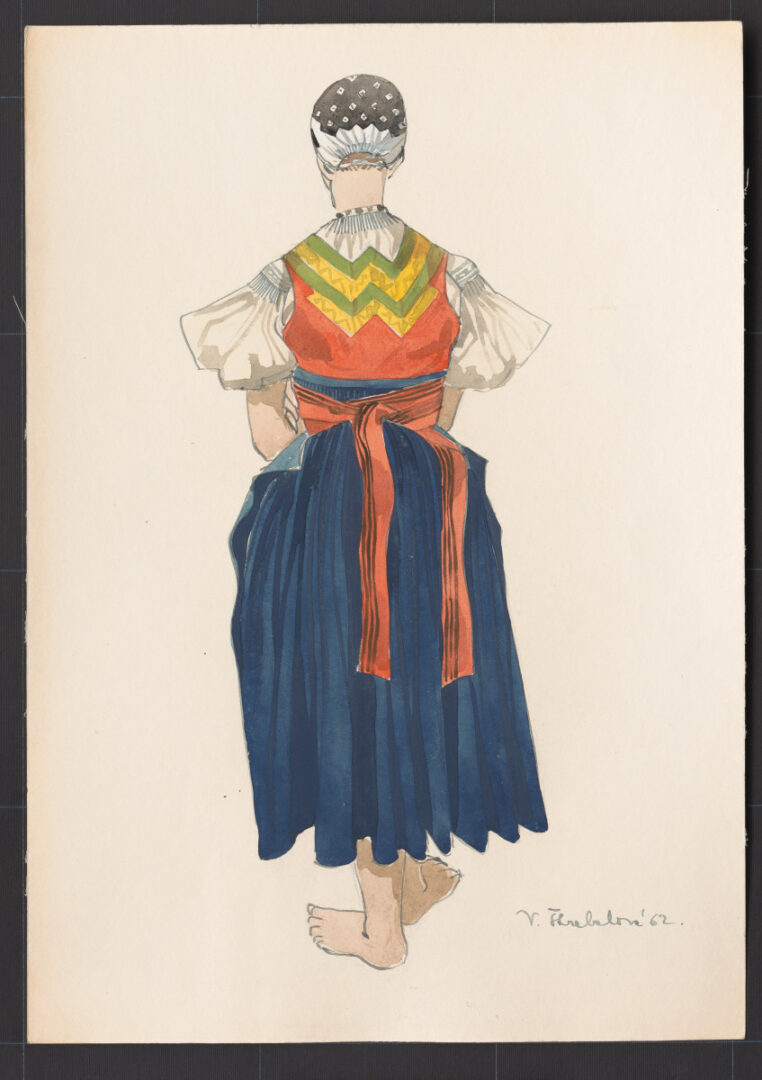 Viera Škrabalová-Líčeníková bola výraznou slovenskou textilnou výtvarníčkou so širokým záberom tvorivých činností. V rámci pôsobenia v ÚĽUV-e sa Viera Škrabalová-Líčeníková venovala aj odevnej návrhárskej tvorbe. Kresbové návrhy módneho oblečenia nesú v sebe výzdobné prvky ľudového odevu ako sú výšivka alebo čipka, inšpiráciou bolo tiež tvarové riešenie ľudových odevných súčiastok. Kresby dokumentujú situáciu 50-tych rokov 20. storočia, kedy ÚĽUV úzko spolupracoval s vyšívačskými, čipkárskymi či modrotlačovými výrobnými družstvami. Touto spoluprácou medzi družstvami a návrhovými dielňami vzniklo niekoľko hodnotných modelov, ktoré prešli aj do bežnej výroby.