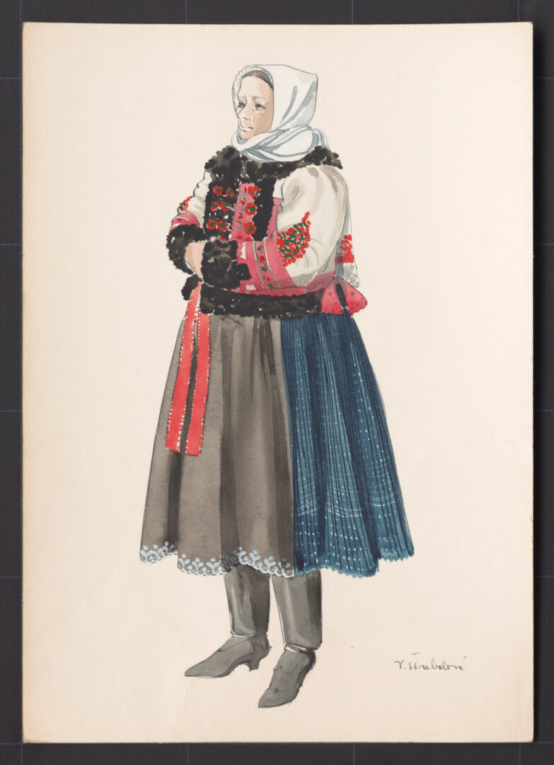 Viera Škrabalová-Líčeníková bola výraznou slovenskou textilnou výtvarníčkou so širokým záberom tvorivých činností. V rámci pôsobenia v ÚĽUV-e sa Viera Škrabalová-Líčeníková venovala aj odevnej návrhárskej tvorbe. Kresbové návrhy módneho oblečenia nesú v sebe výzdobné prvky ľudového odevu ako sú výšivka alebo čipka, inšpiráciou bolo tiež tvarové riešenie ľudových odevných súčiastok. Kresby dokumentujú situáciu 50-tych rokov 20. storočia, kedy ÚĽUV úzko spolupracoval s vyšívačskými, čipkárskymi či modrotlačovými výrobnými družstvami. Touto spoluprácou medzi družstvami a návrhovými dielňami vzniklo niekoľko hodnotných modelov, ktoré prešli aj do bežnej výroby.
