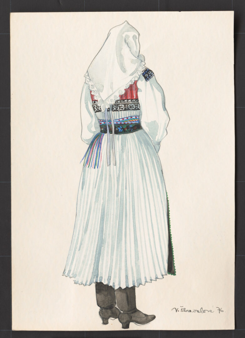 Viera Škrabalová-Líčeníková bola výraznou slovenskou textilnou výtvarníčkou so širokým záberom tvorivých činností. V rámci pôsobenia v ÚĽUV-e sa Viera Škrabalová-Líčeníková venovala aj odevnej návrhárskej tvorbe. Kresbové návrhy módneho oblečenia nesú v sebe výzdobné prvky ľudového odevu ako sú výšivka alebo čipka, inšpiráciou bolo tiež tvarové riešenie ľudových odevných súčiastok. Kresby dokumentujú situáciu 50-tych rokov 20. storočia, kedy ÚĽUV úzko spolupracoval s vyšívačskými, čipkárskymi či modrotlačovými výrobnými družstvami. Touto spoluprácou medzi družstvami a návrhovými dielňami vzniklo niekoľko hodnotných modelov, ktoré prešli aj do bežnej výroby.