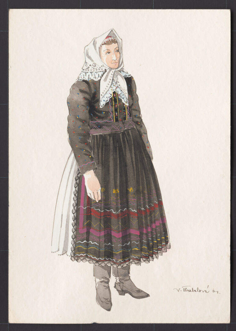 Súbor kresieb, ktoré sa nachádzajú v zbierke Múzea ľudovej umeleckej výroby, obsahuje najmä návrhy ženských denných a spoločenských šiat, tiež blúz. Súčasťou návrhov sú stručné popisy udávajúce materiál, strih a výzdobu odevov. Na zhotovenie šiat boli navrhované prírodné tkaniny – bavlnené, ľanové i hodvábne materiály.