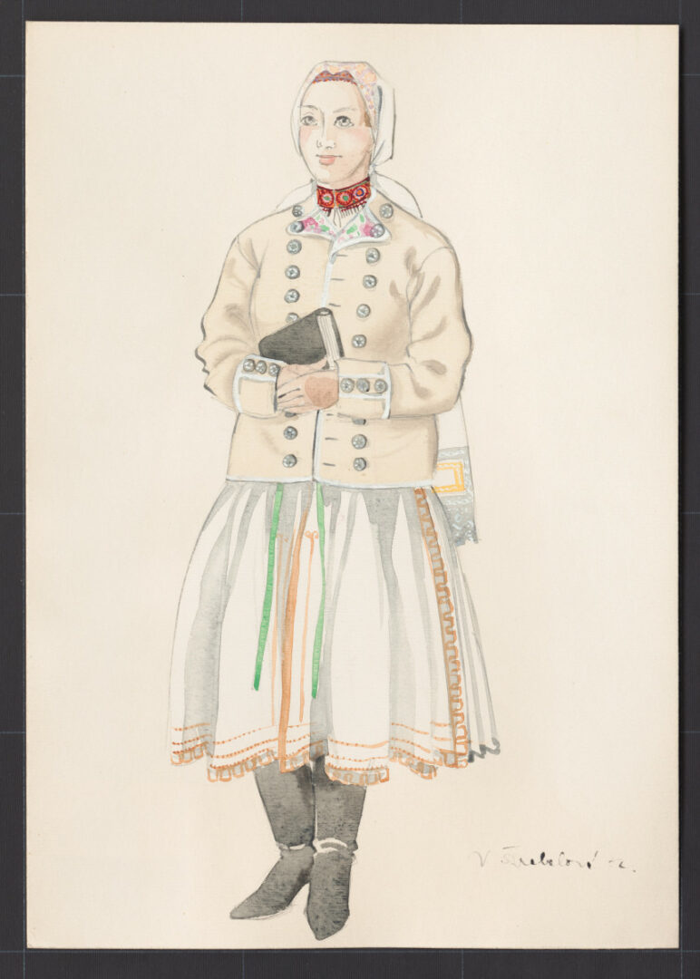 Viera Škrabalová-Líčeníková bola výraznou slovenskou textilnou výtvarníčkou so širokým záberom tvorivých činností. V rámci pôsobenia v ÚĽUV-e sa Viera Škrabalová-Líčeníková venovala aj odevnej návrhárskej tvorbe. Kresbové návrhy módneho oblečenia nesú v sebe výzdobné prvky ľudového odevu ako sú výšivka alebo čipka, inšpiráciou bolo tiež tvarové riešenie ľudových odevných súčiastok. Kresby dokumentujú situáciu 50-tych rokov 20. storočia, kedy ÚĽUV úzko spolupracoval s vyšívačskými, čipkárskymi či modrotlačovými výrobnými družstvami. Touto spoluprácou medzi družstvami a návrhovými dielňami vzniklo niekoľko hodnotných modelov, ktoré prešli aj do bežnej výroby.