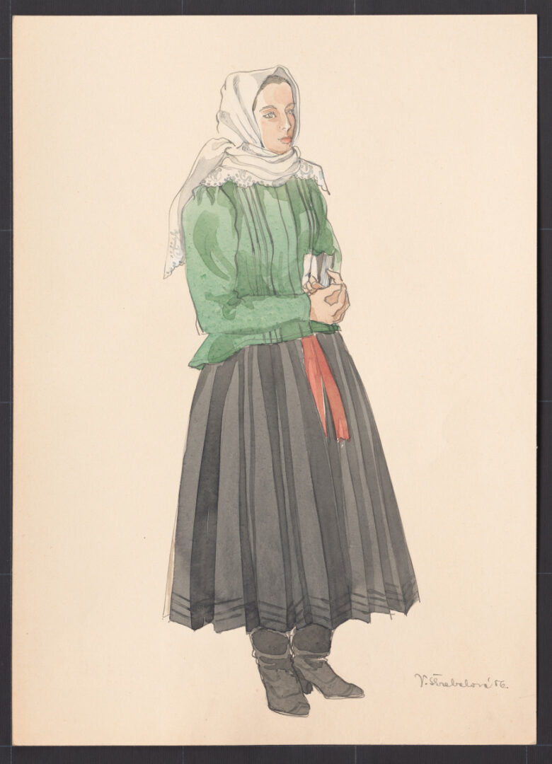 Kresba – odev ženský sviatočný – zimný