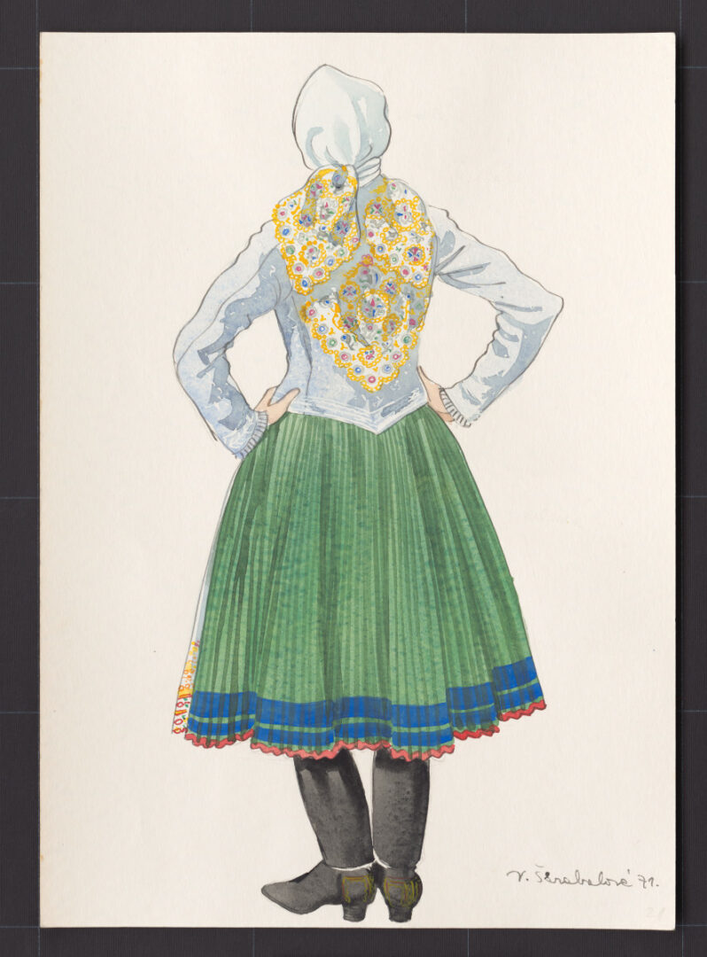 Viera Škrabalová-Líčeníková bola výraznou slovenskou textilnou výtvarníčkou so širokým záberom tvorivých činností. V rámci pôsobenia v ÚĽUV-e sa Viera Škrabalová-Líčeníková venovala aj odevnej návrhárskej tvorbe. Kresbové návrhy módneho oblečenia nesú v sebe výzdobné prvky ľudového odevu ako sú výšivka alebo čipka, inšpiráciou bolo tiež tvarové riešenie ľudových odevných súčiastok. Kresby dokumentujú situáciu 50-tych rokov 20. storočia, kedy ÚĽUV úzko spolupracoval s vyšívačskými, čipkárskymi či modrotlačovými výrobnými družstvami. Touto spoluprácou medzi družstvami a návrhovými dielňami vzniklo niekoľko hodnotných modelov, ktoré prešli aj do bežnej výroby.