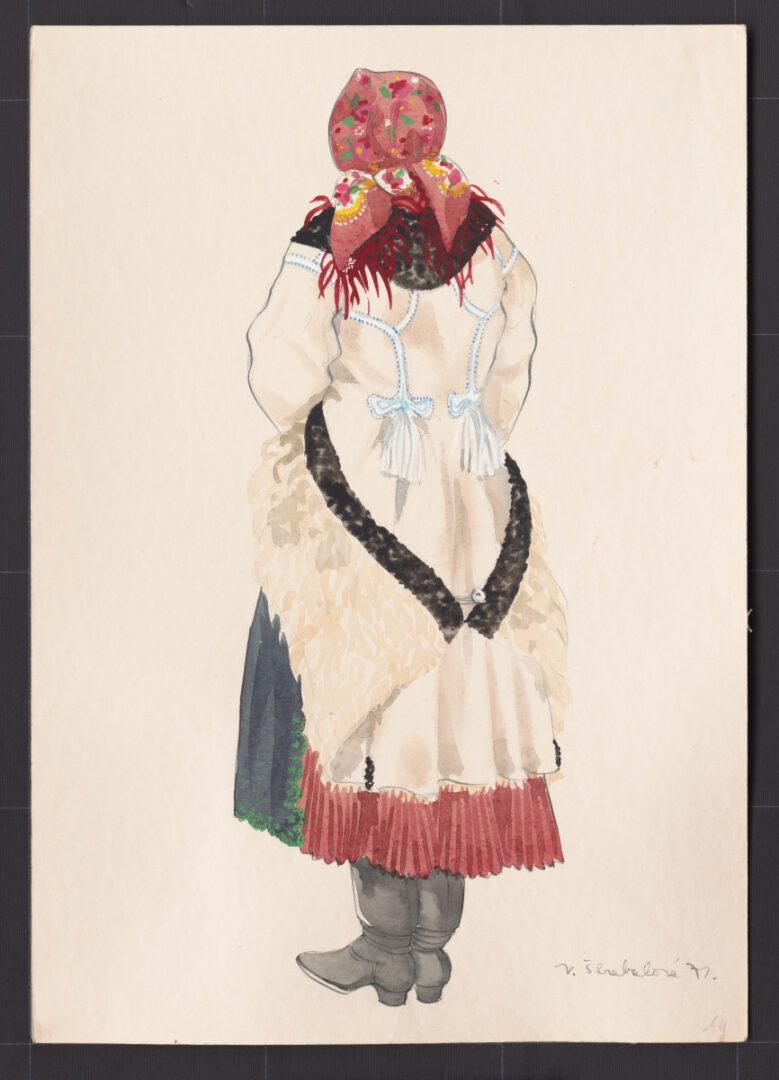 Súbor kresieb, ktoré sa nachádzajú v zbierke Múzea ľudovej umeleckej výroby, obsahuje najmä návrhy ženských denných a spoločenských šiat, tiež blúz. Súčasťou návrhov sú stručné popisy udávajúce materiál, strih a výzdobu odevov. Na zhotovenie šiat boli navrhované prírodné tkaniny – bavlnené, ľanové i hodvábne materiály.