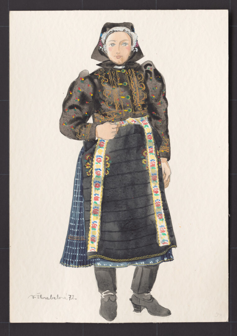 Súbor kresieb, ktoré sa nachádzajú v zbierke Múzea ľudovej umeleckej výroby, obsahuje najmä návrhy ženských denných a spoločenských šiat, tiež blúz. Súčasťou návrhov sú stručné popisy udávajúce materiál, strih a výzdobu odevov. Na zhotovenie šiat boli navrhované prírodné tkaniny – bavlnené, ľanové i hodvábne materiály.